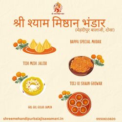 Mehandipur balaji sawamani online booking | Shree Shyam Mishthan Bhandar - Dausa